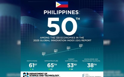 MANILA – The Philippines has climbed to the 50th spot in the 2025 Global Innovation Index (GII), up three notches from last year’s ranking. The Department of Science and Technology (DOST) said the country’s upward ranking “underscores the growing role of science, technology, and innovation in shaping the country’s economic and social future, with DOST at the forefront of this transformation.”